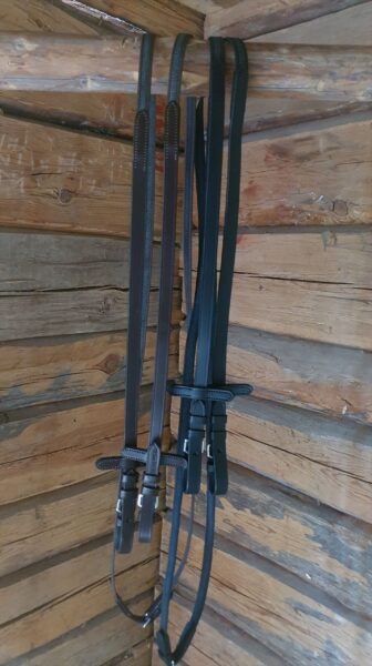 Match reins with one of our bridles. Bling or stylish, made of rubber fabric or leather.